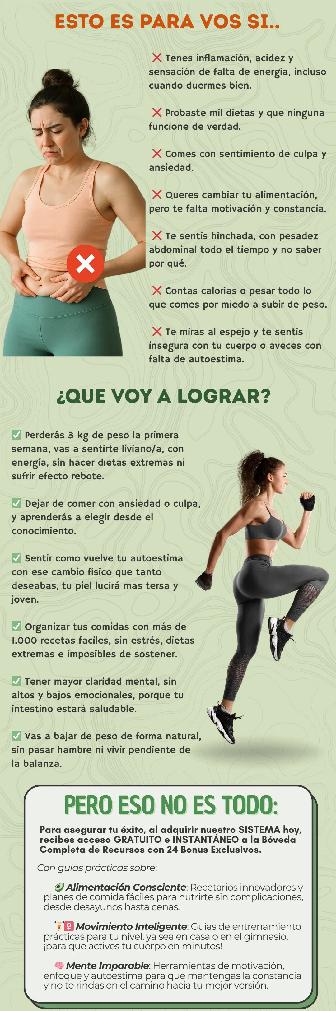 Es un método claro y natural para deshincharte, alimentarte mejor y sentirte biensin vueltas.