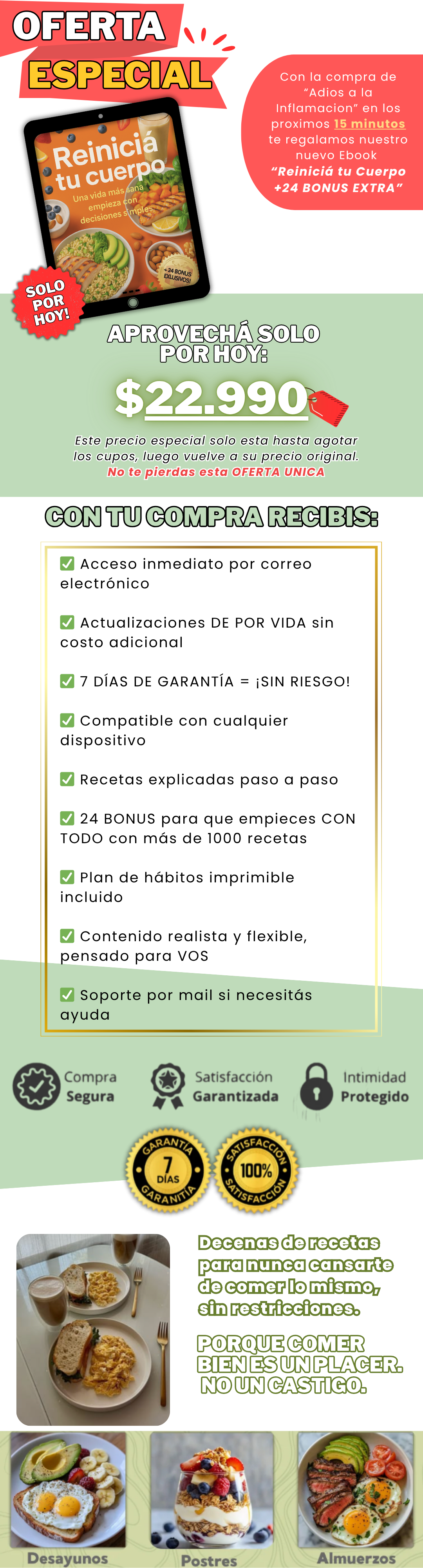 Ebook Adiós a la Inflamación + Guía Reinicia Tu Cuerpo [24 BONUS DE REGALO]